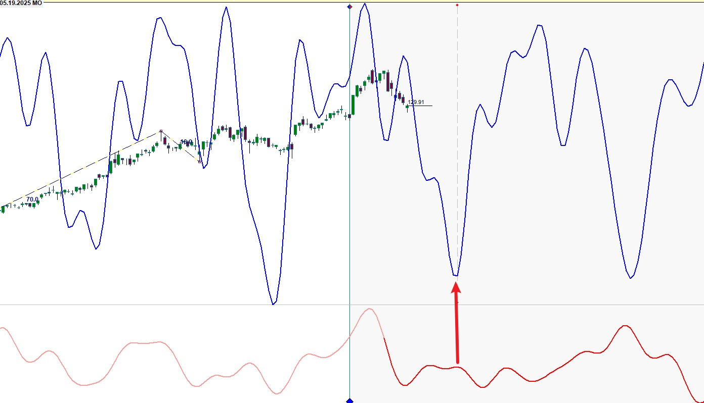 觀察副圖(圖三),多條週期線在13日附近匯聚谷底,形成「週期共振」,預示高概率的轉折點。這就是我們計劃中的「高概率觀察窗口」。